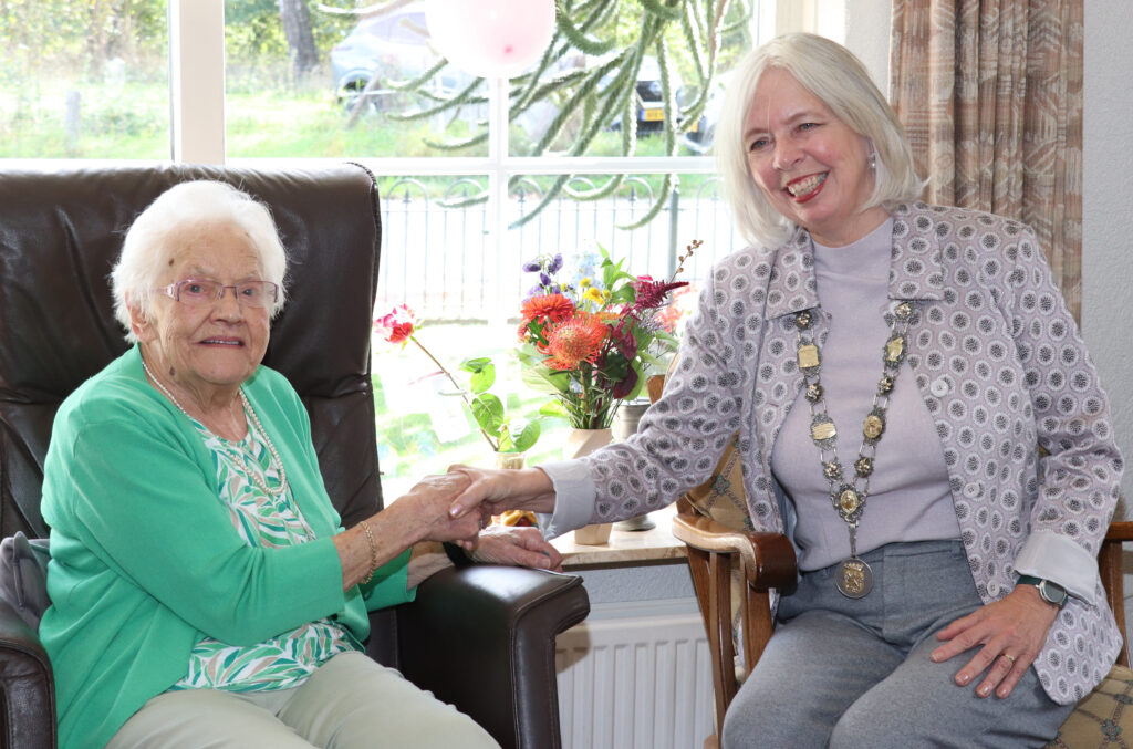 Ze hef ’n hele mooie verjaordag ehad. De buur’n hadden ’t mooi versierd en d’r was de hele dag anloop. Behalve völle bloemen en kaarten kri’g ze ok ’n brief van de secretaris van de koning. Met d’r bi-j ’n foto van koning Willem-Alexander en koningin Máxima. Groot’n indruk maakten de vaandelzwaaiers van buurtvereniging Slangenburg.
