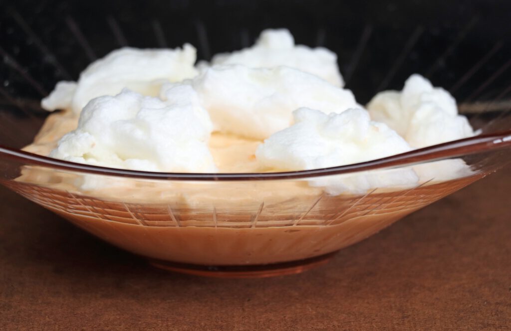 Maak met de vla en eiwitvlokken een decoratief toetje.